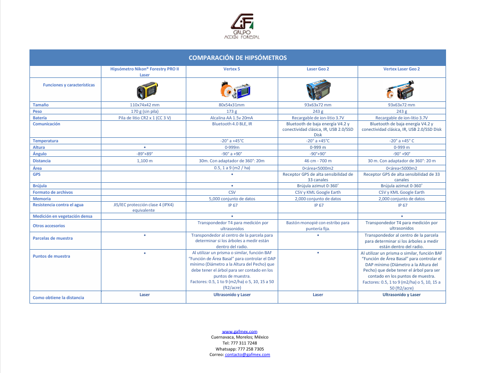 Capacidad de medición remota de diámetro, capacidad multiprograma, aplicaciones personalizadas, vector 3D, mapa de senderos, medición de área, medición de altura y de anchura de la cubierta forestal, función de área basal, aclareo, medición de árbol de peligro.